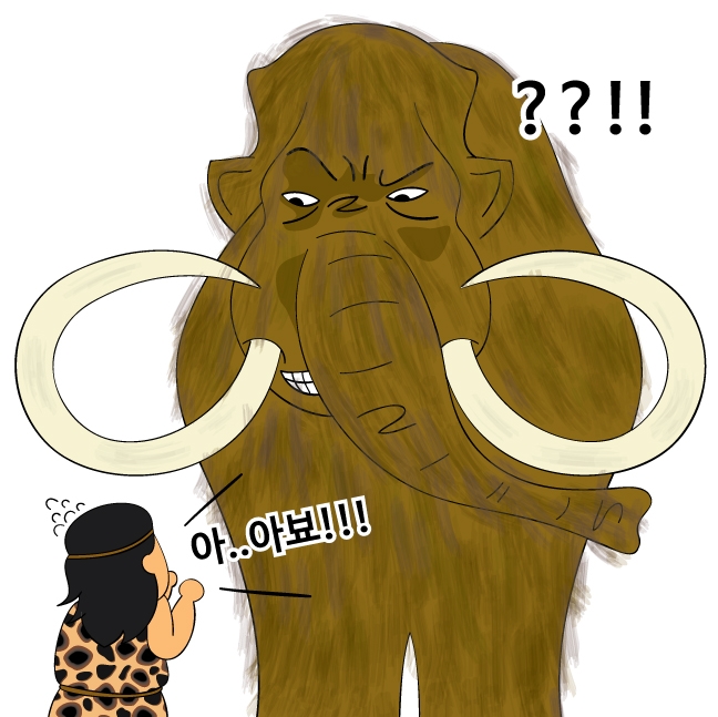 인간들은 도구를 사용하기 시작했어. 주먹 또는 하이킥으로는 맘모스를 도저히 이길 수가 없는 거야.