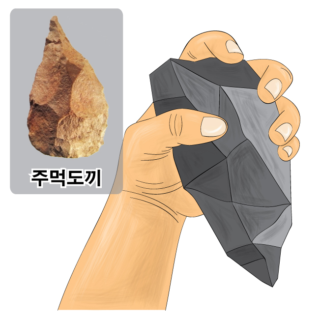 어떤 도구를 사용했느냐? 바로 이런 도구들! 주먹도끼야.<★★★★>