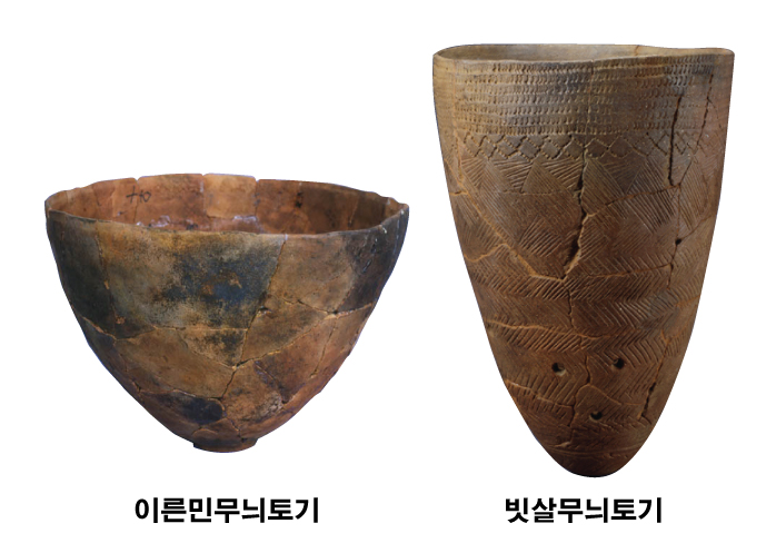 신석기 시대에 만들어진 토기에는 이른민무늬토기와 빗살무늬토기<★★★>가 있어.