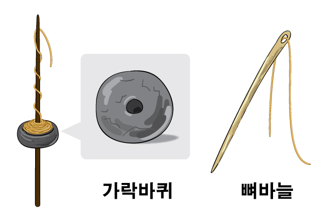 이를 알 수 있게 해준 것이 가락바퀴와 뼈바늘이야.