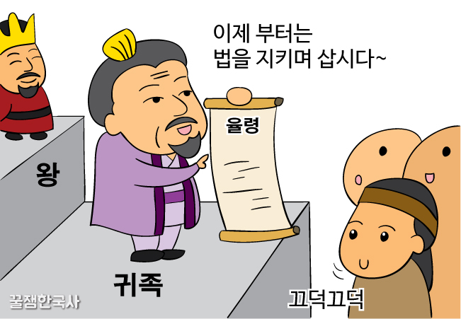 이렇게 법을 제정하여 연맹왕국이 아닌 고대왕국에 적합한, 즉 한반도에 왕권에 유리하도록 맞춰진 중앙집권체제의 옷을 입히는 거야.
