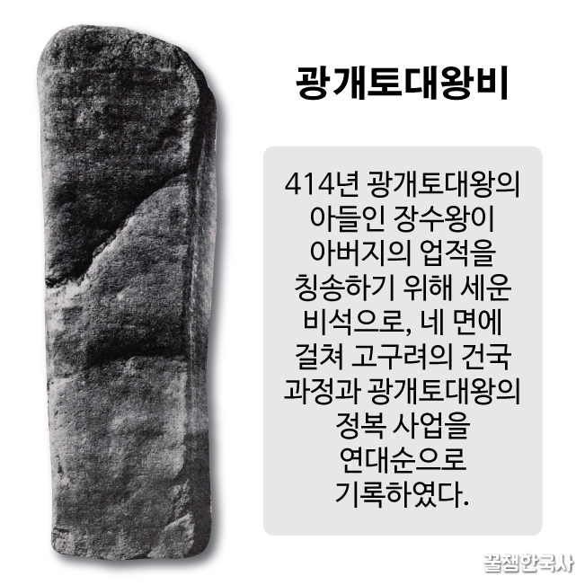 또한 광개토대왕이 정복을 한 땅은 광개토대왕비(광개토대왕이 박은 것이 아니라 장수왕이 "우리 아빠 최고!" 이러면서 세움)가 박혀 있어.