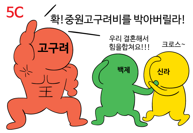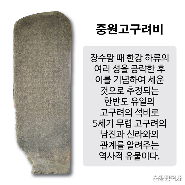 이어서 장수왕은 백제를 더 남쪽으로 쭉쭉 쫓아내 버리고, 충주에 가서 비석을 심어.