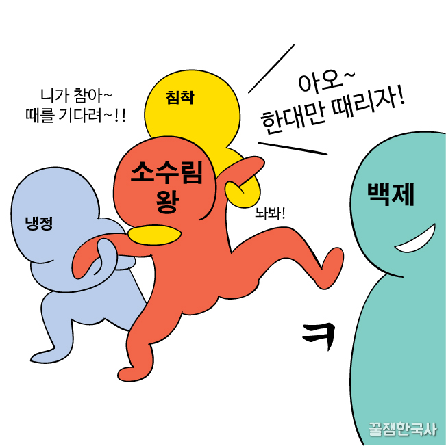 개혁의 왕인 소수림왕은 성급하게 고국원왕의 복수를 하지 않고, 굴욕을 참아내며 우선 내부를 다져.