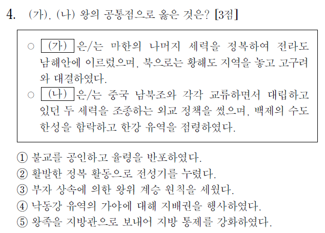 삼국시대 문제는 고구려 백제 신라의 내용을 섞어서 내.