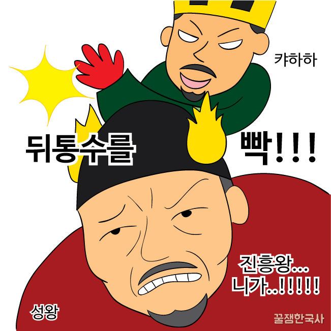 진흥왕은 백제가 한강 유역을 되찾고 좋아라 하며 축하 파티 열고 있을 때, 뒤통수를 후려갈겨버려.