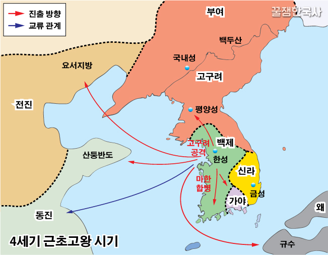 이 기세를 이어받아 근초고왕이 백제의 전성기를 누려.