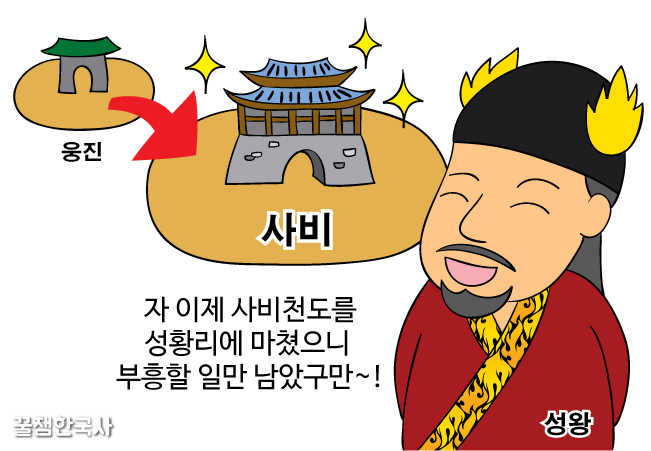 백제의 혼란이 수습되자, 성왕은 쥐꼬리 만한 웅진을 버리고 사비(부여)로 다시 천도를 해.<★★★>