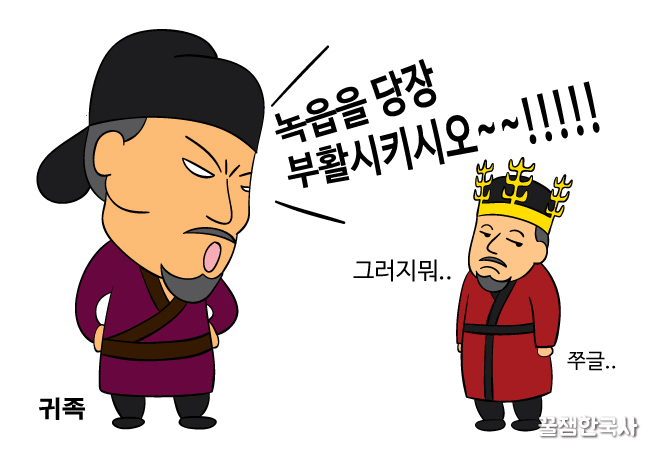 귀족 : 전하!! 저런 미천한 자들을 고위 관료로 쓰시면 나라에 큰 혼란이 옵니다. 통촉하여 주시 옵소서~