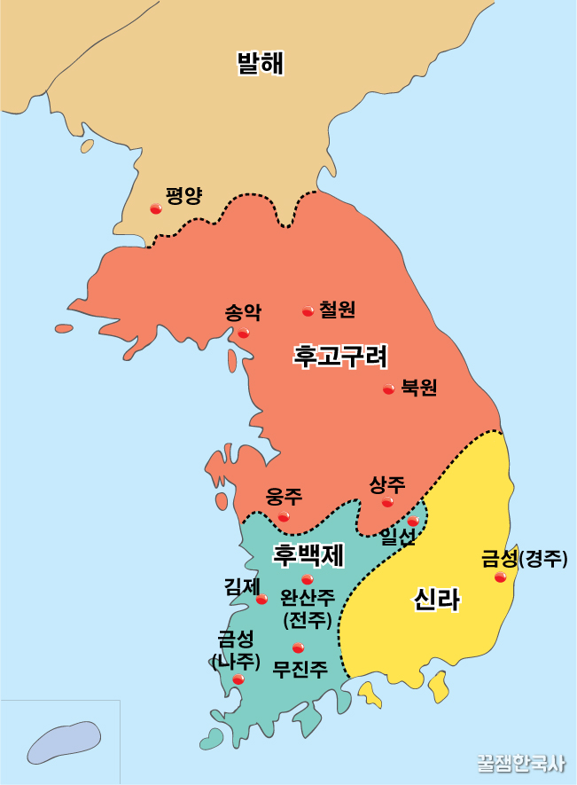 이들은 6두품과 손을 잡고, 풍수지리와 선종을 이념적 지주로 삼아 각지에서 반란을 일으켜서 새로운 시대를 열어.