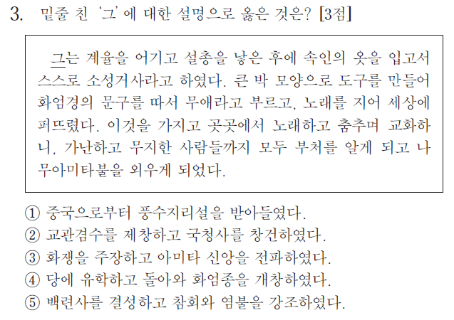 3번 : 화쟁, 아미타 신앙 원효. 정답.