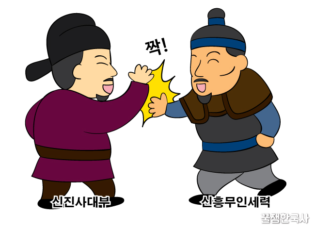 여기서 신진사대부와 신흥무인세력이 권문세족을 발라버리고 실권을 휘어잡아.