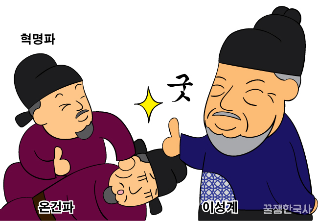 혁명파는 "이제 고려의 힘은 다 했다. 그러니 이성계 대감을 왕으로 추대하고 새로운 국가를 세우자!"