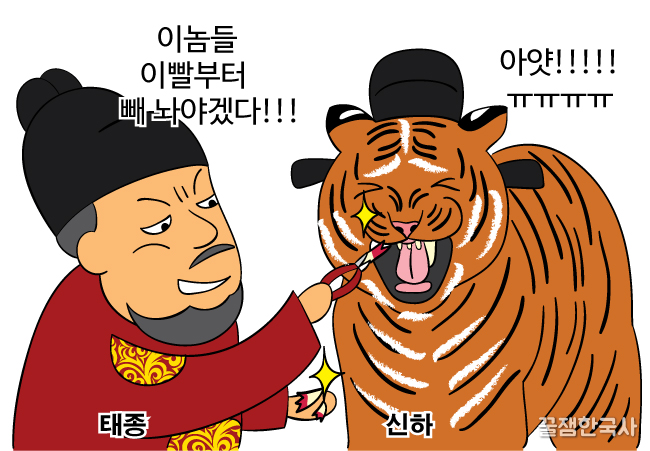 위에서 말한대로 조선의 세 번째 왕으로 등극한 태종 이방원은 강력한 왕권 중심의 나라를 만들고자 일을 시작하지.