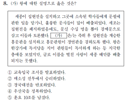 ● 세종 : 의정부서사제. 집현전. 경연. 훈민정음. 4군6진 개척. 대마도 정벌