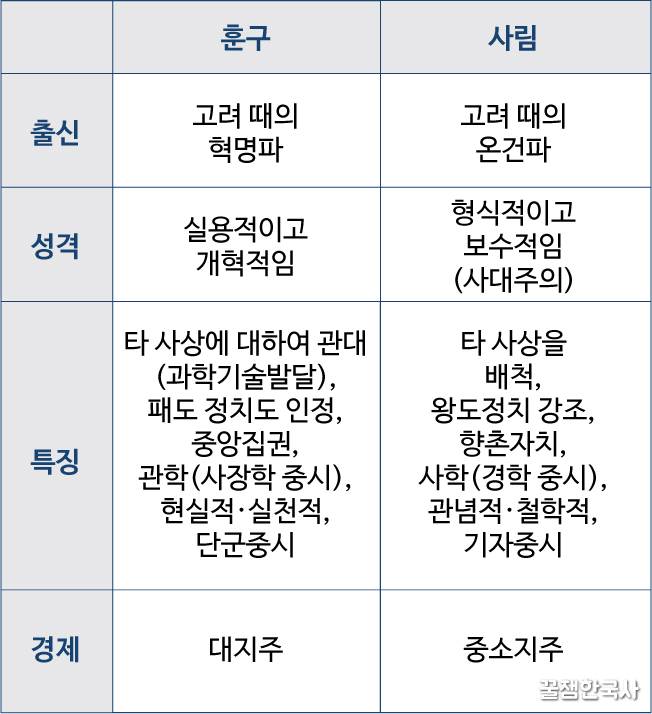 오늘은 그 훈구파와 사림파의 성격, 그리고 사화에 대해 설명을 할 거야.