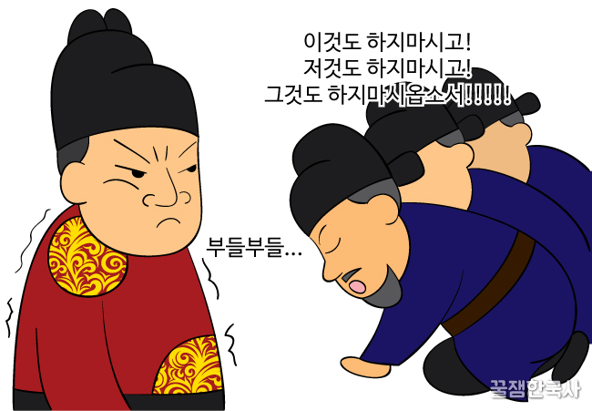 이에 참지 못한 대신들과 삼사들이 한 목소리로 왕에게 충언을 한단다.