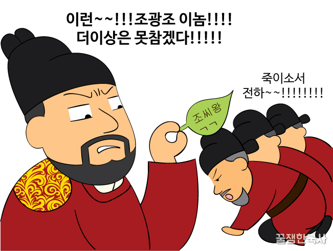 이걸 계기로 중종은 기묘사화를 일으켜 조광조와 사림들을 싹~ 청소해버렸단다.