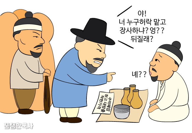 만약 시전상인 구역에서 허가도 받지 않은 사람이 장사를 하잖아?