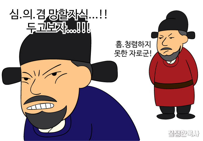 심의겸은 문장으로 유명한 선비가 세도가인 영의정 집에 들락날락 거리는 것을 보고 그를 청렴치 못한 선비라며 속으로 멸시하게 됐지.