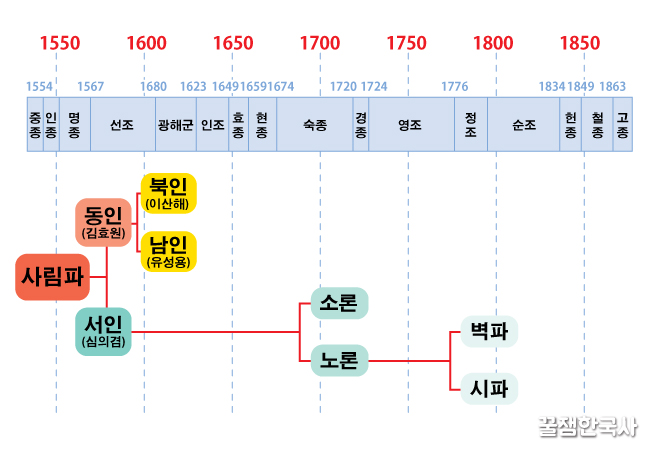 이들 무리의 싸움이 붕당정치의 시작이야.