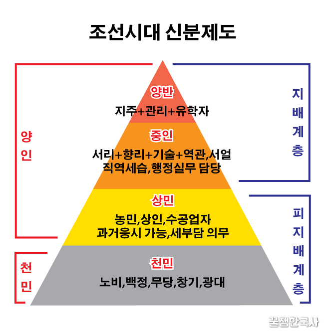 조선이 건국된 후 경국대전을 보면 신분은 양인과 천민으로 나뉘어. 양천제라고 하지.