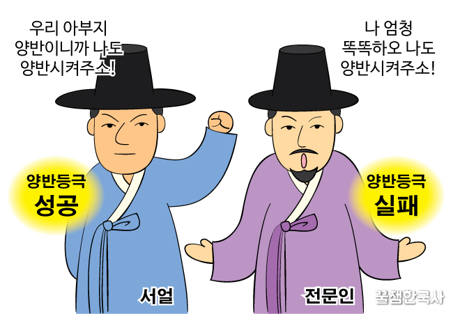 서얼은 영·정조 때 수차례의 신분상승운동을 통해서 양반 신분을 얻은 사람들이 있어. 즉 성공한 거지!