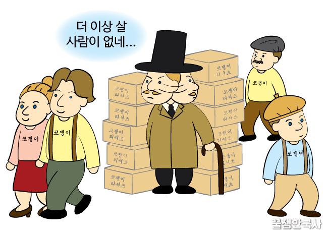 주변의 이웃나라에 팔려고 했는데 거기도 역시 공급량이 초과돼서 물건이 남아돌아.