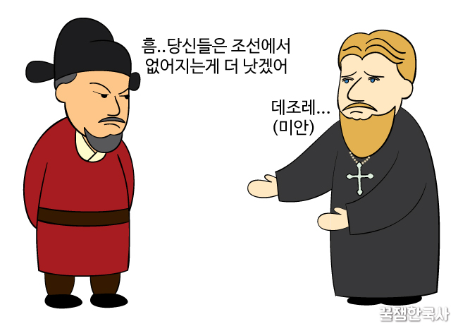 이때 천주교 신도 8000여명과 신부를 처형하는 엄청난 일을 저질러.