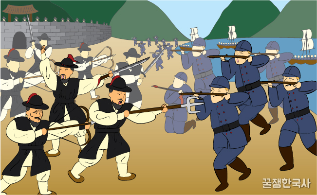 초지진과 광성보가 점령당하면서 어재연이 이끄는 조선군은 엄청 뚜드러 맞아 ㅡㅜ<★★>