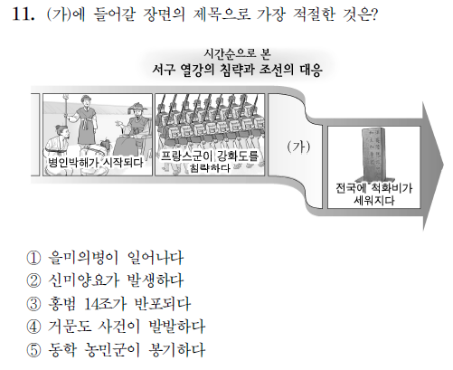 병인양요와 척화비 세워진 시기의 사이에 들어갈 사건을 찾으면 되겠군.