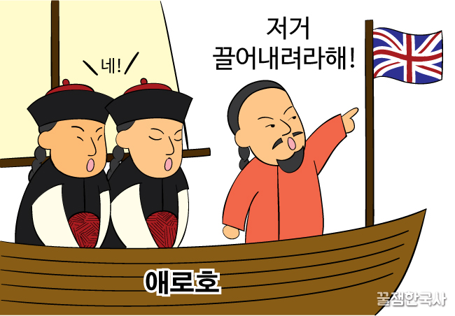 밀수선은 결국 청나라 조정에 걸리고, 청나라 관원들이 검문을 하던 도중 영국국기를 끌어내린단다.