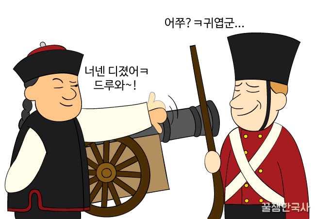 청나라 : 뭐 국기 하나 끌어내린 것 갖고 배상금을 요구하냐 이 코쟁이놈들아.