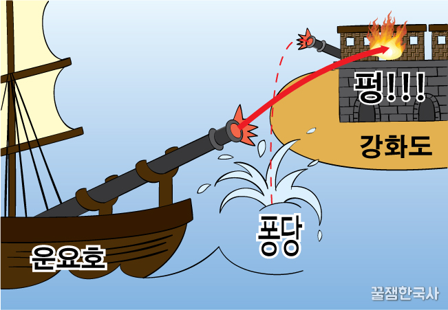 신미양요 때 습득한 조선에 대한 정보를 미국으로부터 받은 일본은 운요호라는 배를 강화도로 몰고 가서 조선의 해안을 연구하겠다고 해.