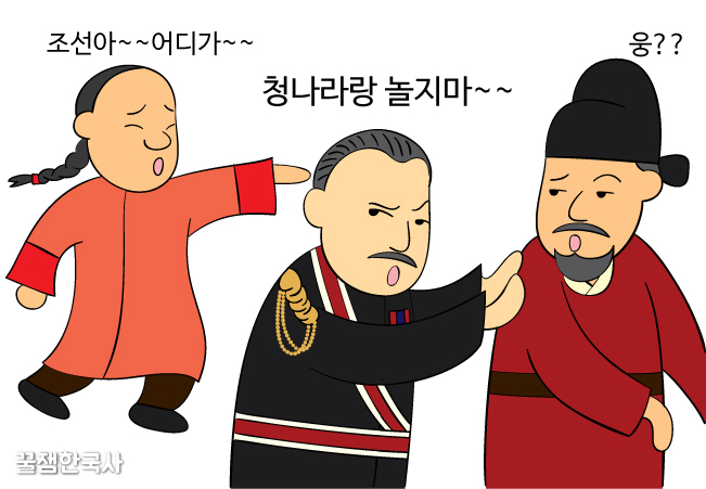 이는 조선을 수탈하는데 청나라의 방해를 받지 않기 위한 것이야.