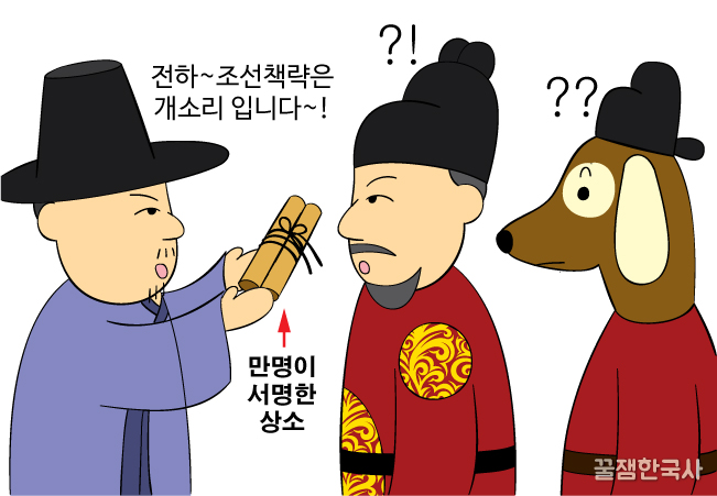 바로 영남만인소 사건이야. 이게 뭐냐면 서양열강과의 수교를 반대하는 내용에 대하여 이만손을 비롯한 영남 유생들 1만명이 서명을 하여 상소를 올린게지.<★★★>