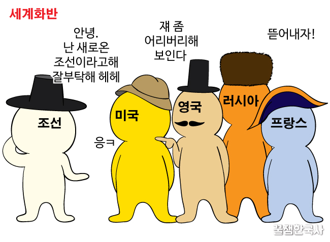 또한 미국에 개항한 김에 영국·프랑스·러시아 등과 조약을 체결하여 조선의 닫힌 문을 세계로 활짝 열지!