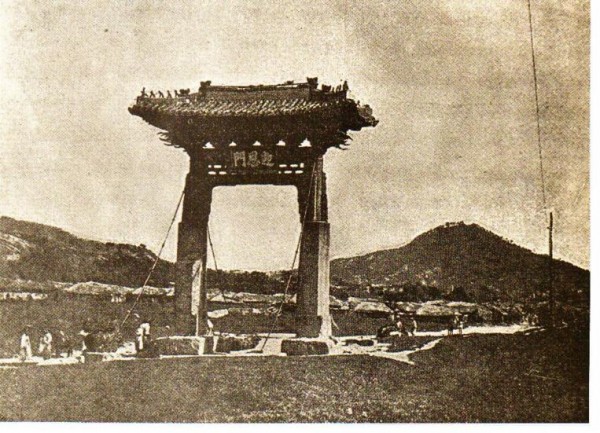<영은문이 철거되고, 그 자리에 우뚝 선 독립문>