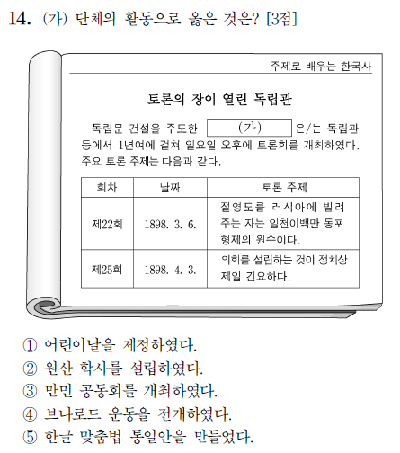독립협회가 얼마나 영향력이 컸냐면 러시아가 부산 절영도를 석탄기지로 이용하기 위해 조차(조약에 의해 빌림)하려고 하자 독립협회가 나서서 저지했어.<★★★★>