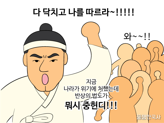 상소도 올리고 집회도 열며 평화적으로 나가다가 그 방법이 더 이상 통하지 않자 이제는 의병을 일으켜 무기를 들고 무력투쟁을 전개해.
