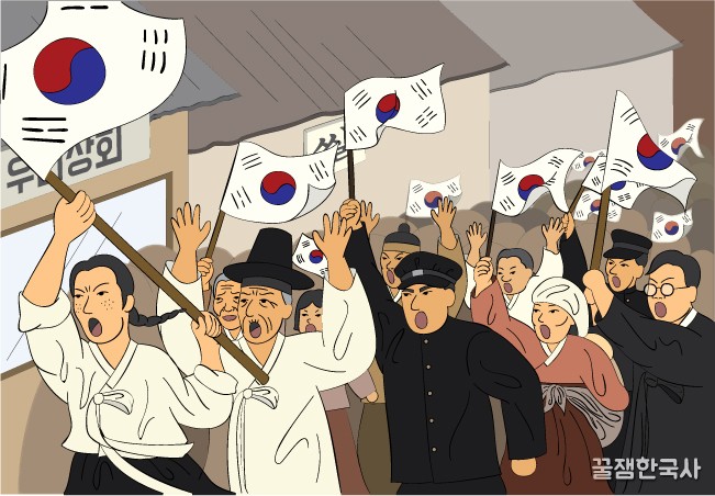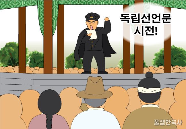낭독을 마치자 수만 명의 민중은 크게 호응을 하고 대한독립만세를 외치며 행진을 시작한단다!!!