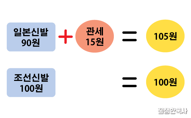 이렇게 되면 일본신발이 더 비싸기 때문에 사람들이 조선신발을 더 사게 되겠지?