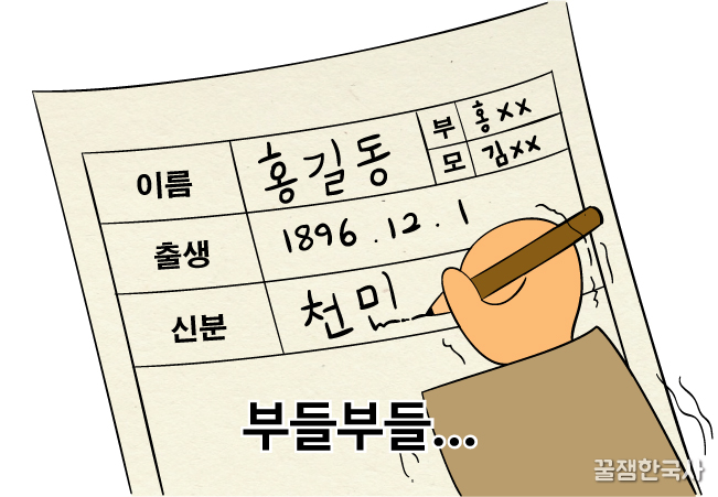 이때 당시에 이력서나 입학원서에 신분을 기재하게 하는 등으로 의도적으로 신분차별을 유지하는 일이 있었는데, 이에 반발하여 1923년 백정들이 진주에서 조선형평사를 조직해.<★★>