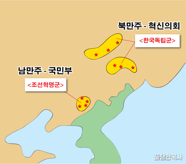 혁신의회와 국민부는 후에 각각 한국독립당(군)과 조선혁명당(군)으로 연결되어 1930년대 초반의 독립전쟁의 주인공이 된단다.