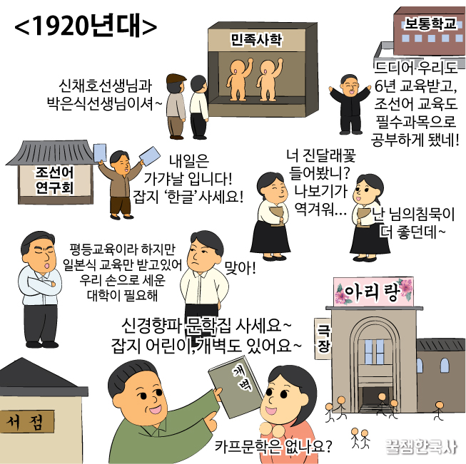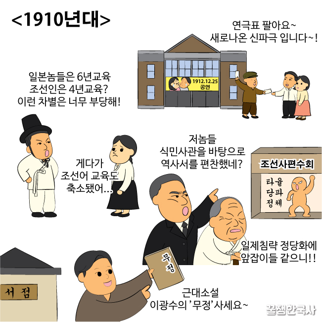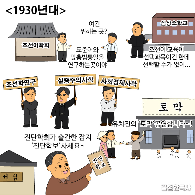 이때는 조선사편수회(조선사편찬위원회가 변한 단체)가 왜곡된 역사서 편찬으로 일제 침략을 정당화하는 식민사관을 만들어내.
