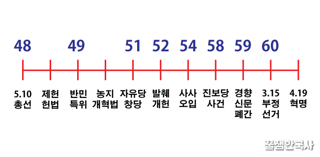 ● 개헌시도 → 부결 → 부산정치파동 → 발췌개헌(대통령직선제) → 개헌성공 → 대통령 재선에서 이승만 승리