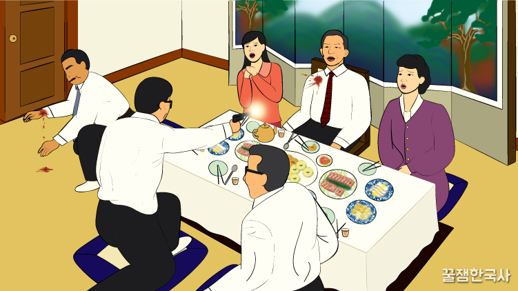 이렇게 김재규의 굴욕적인 날이 계속 되다가 어느 날 궁정동에서 박정희, 김계원(비서실장), 김재규, 차지철이 술을 마시면서 놀고 있었어.