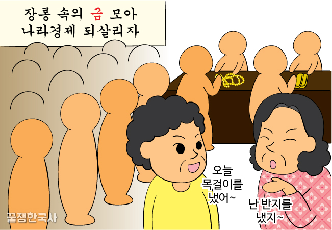 90년이란 세월이 흐른 이 날에도 우리 국민들은 경제위기를 탈출하고자 집에 있는 금들을 기부했어.
