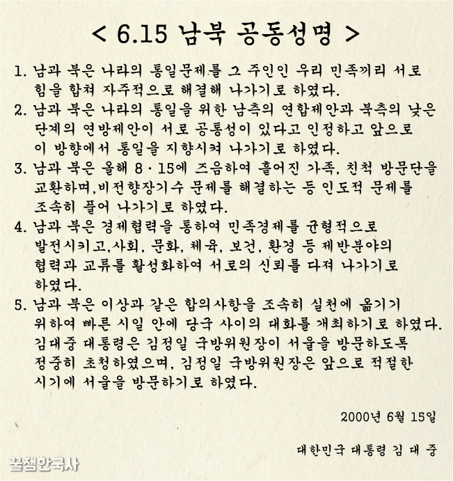 15일, 김 대통령이라는 단서를 봐서 이는 6.15 남북 공동선언임을 알 수 있어.
