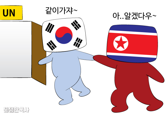 남북UN동시 가입(91)<★★★★> : 원래 북한이 반대해 왔었는데 UN에 각 나라 정부 자격으로 동시에 가입해.